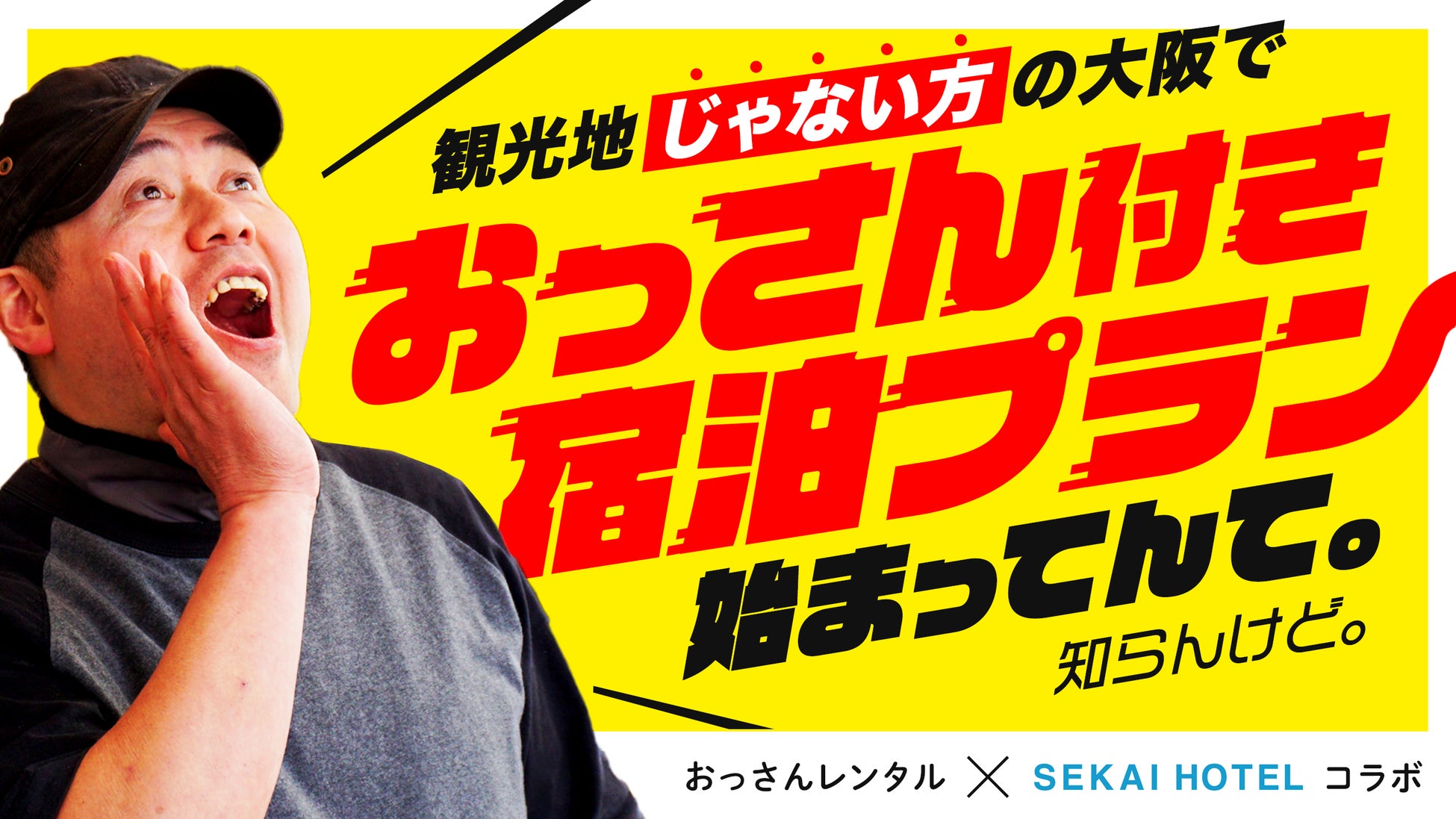 地元に根差した大阪の「商店街まるごとホテル」と、中年男性のレンタルサービス「おっさんレンタル」とのコラボ企画。宿泊滞在期間中にリアルな「おっさん」を1時間「貸し出す」という、異色な宿泊体験をご提供します。