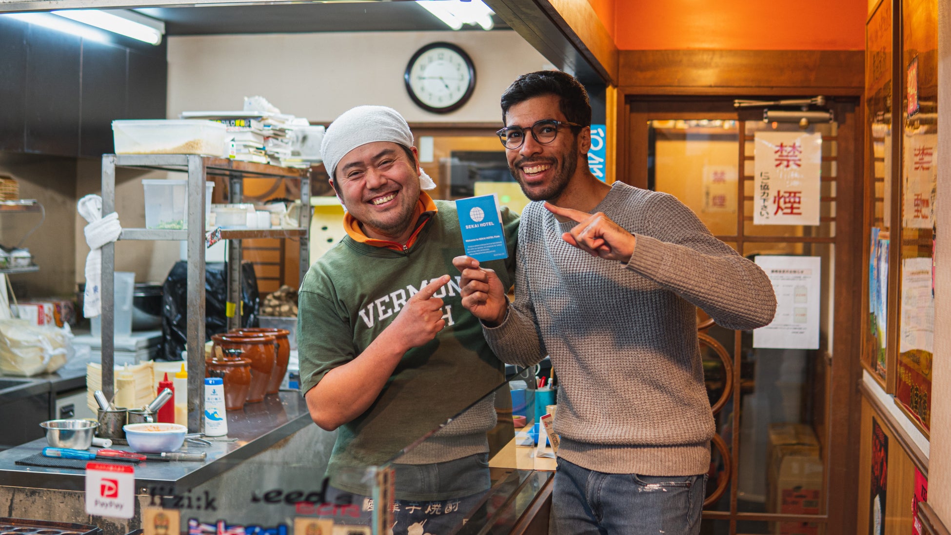 舞台となるのは、東大阪にある布施駅の商店街。大阪・関西万博会場まで電車で50分、USJまで35分という立地にありながら、大阪らしい文化を堪能することができます。この商店街にあるのが、商店街まるごとホテル「SEKAI HOTEL Fuse」。ホテルのレストラン・大浴場といった機能を商店街内に分散させた「まちごとホテル」。地域に点在する空き家をリノベーションし、それらがお客様が滞在する客室となり、食事を商店街の喫茶店、定食屋、居酒屋で味わい、お風呂を銭湯で楽しみます(各部屋にシャワーやバスルームもあり)。グーグル評価は4.6(クチコミ数は197件※2025年3月)。