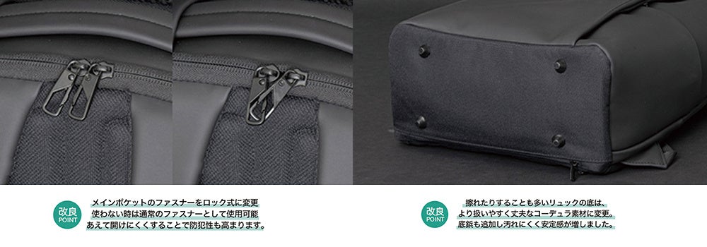 今回の第2弾は防犯性や強度を向上させ、より快適で信頼性の高いリュックとして多くのビジネスパーソンの生活に寄り添える商品に仕上がっています。
