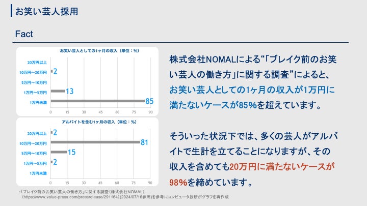 出典:「ブレイク前のお笑い芸人の働き方」に関する調査(株式会社NOMAL)(https://www.value-press.com/pressrelease/291164)(2024/07/16参照)