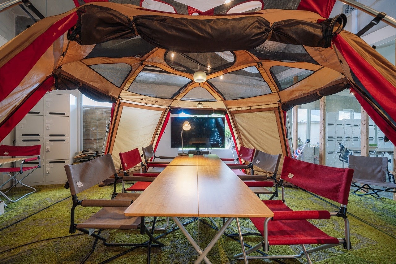 施設:個室2室、コワーキングデスク50席、ラウンジ20席、テントルーム10席、オンライン会議ブース3室、無料駐車場