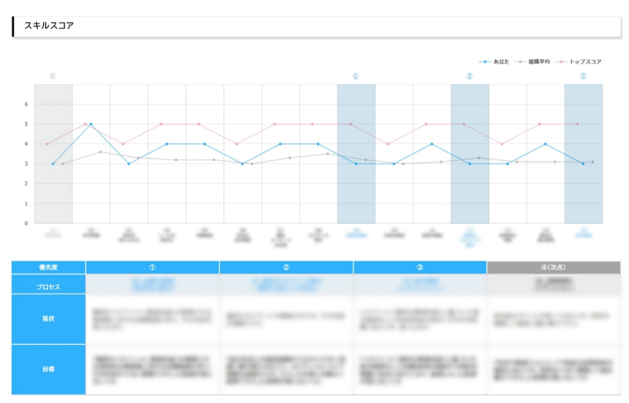 組織や個⼈の評価・分析結果をフィードバックする評価機能(ダッシュボード)と、トレーニング動画の視聴や事例共有など相互学習を促進する学習機能(シェア機能)があり、成果につながるスキル学習をワンストップで提供。 顧客視点での客観的な評価を可能にするだけでなく、対話スキル向上のための育成ツール「スキルマップ」としても活⽤できる。