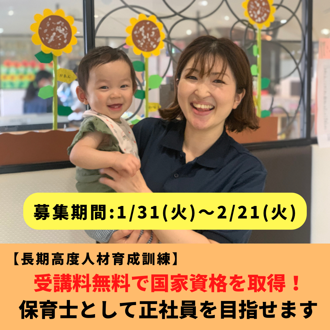 受講料無料で「保育士」の国家資格取得、正社員就職を目指す!
