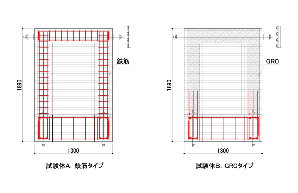 試験体B:GRC(ガラス繊維補強コンクリート)で引張力を負担するタイプ