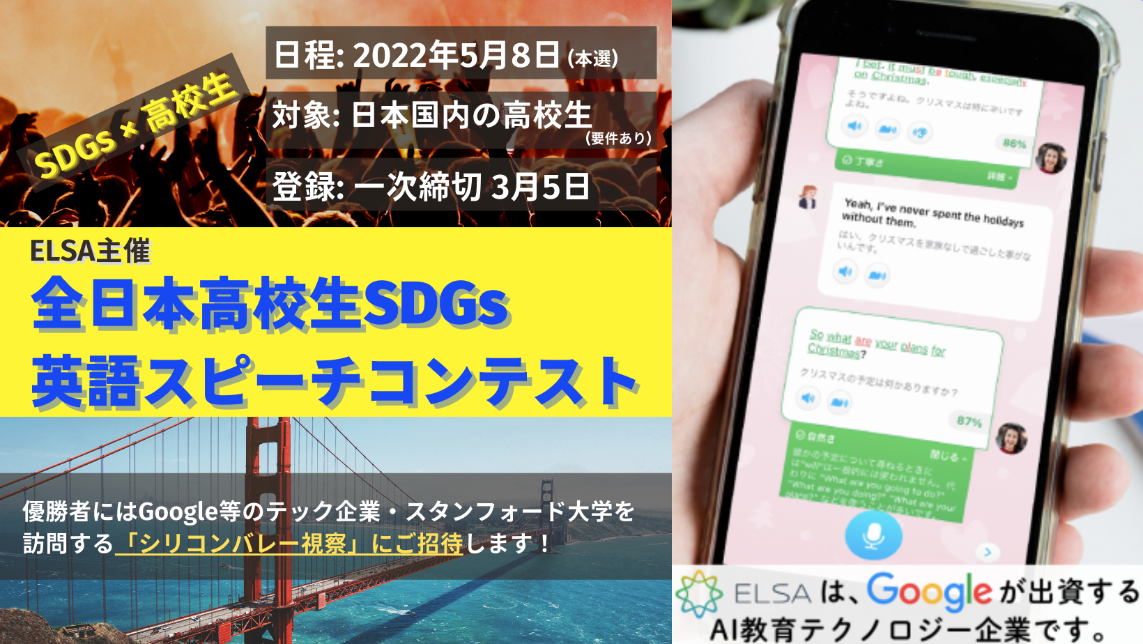 1. 参加していただいた方全員に、ELSAのアカウントを無料開放致します!将来の英語学習をより円滑に取り組める環境を提供致します。(無料開放期間は、参加登録後にお送りするELSAの案内メールを受け取り後から、決勝大会の5月8日までとなります。)
