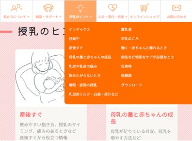 妊娠中から卒乳まで、知りたい情報を、その道のりに沿ってわかりやすく提供しています。