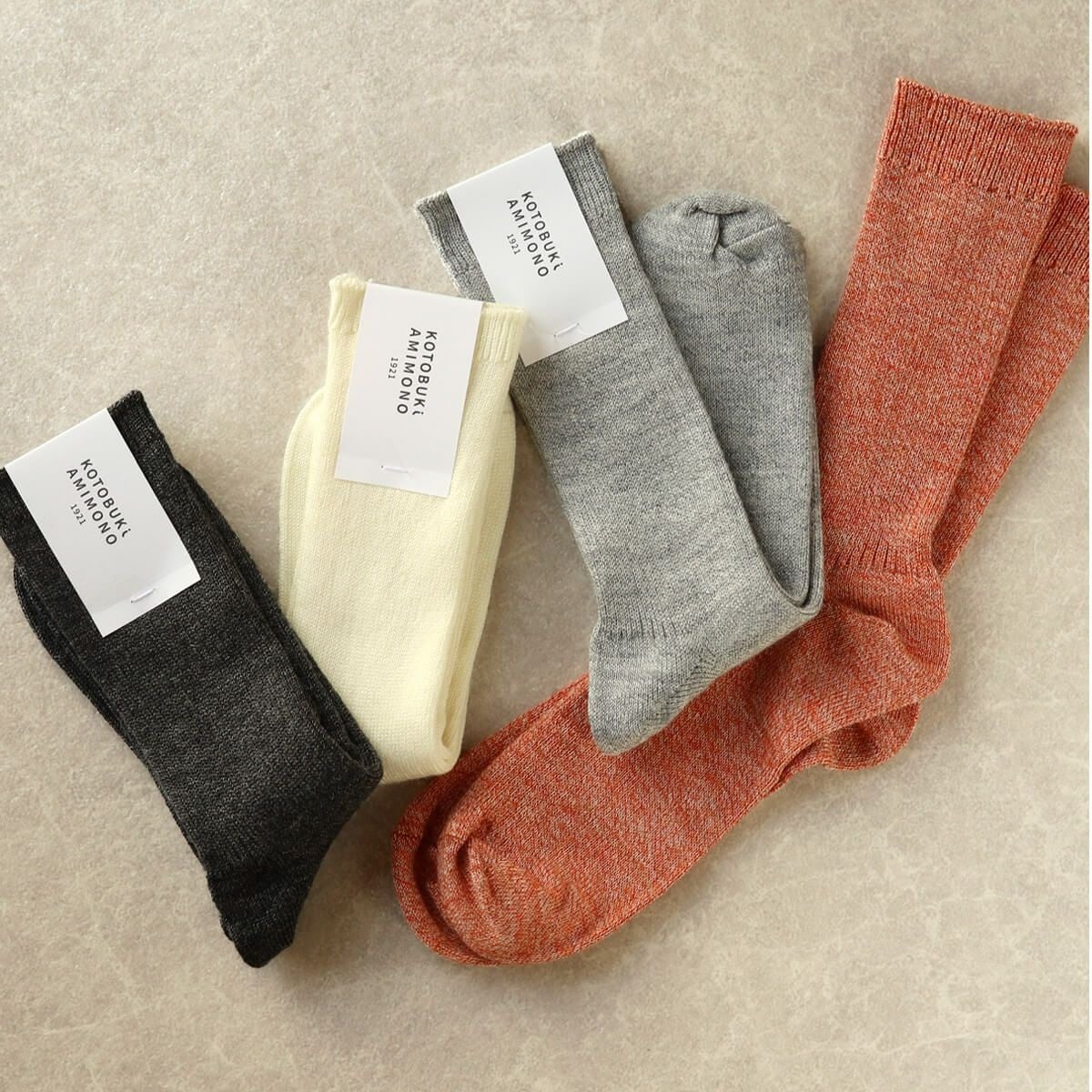 こんにちは。KOTOBUKI AMIMINOです。創業以来、愛知県名古屋の地で靴下を作り続けてきて約100年。日本のものづくりの魅了を知ってもらいたい!とファクトリーブランドを立ち上げました。ファストファッションや海外輸入品が主流になっている今、‟長く履いて、長く愛してほしい”をモットーに、履いた人が幸せを感じられるような靴下作りを心掛けています。デザインはもちろん、上質な素材を厳選し糸にもこだわりました。いつまでも大切に履き続けたくなる、そんなお気に入りの一足をお届けします。