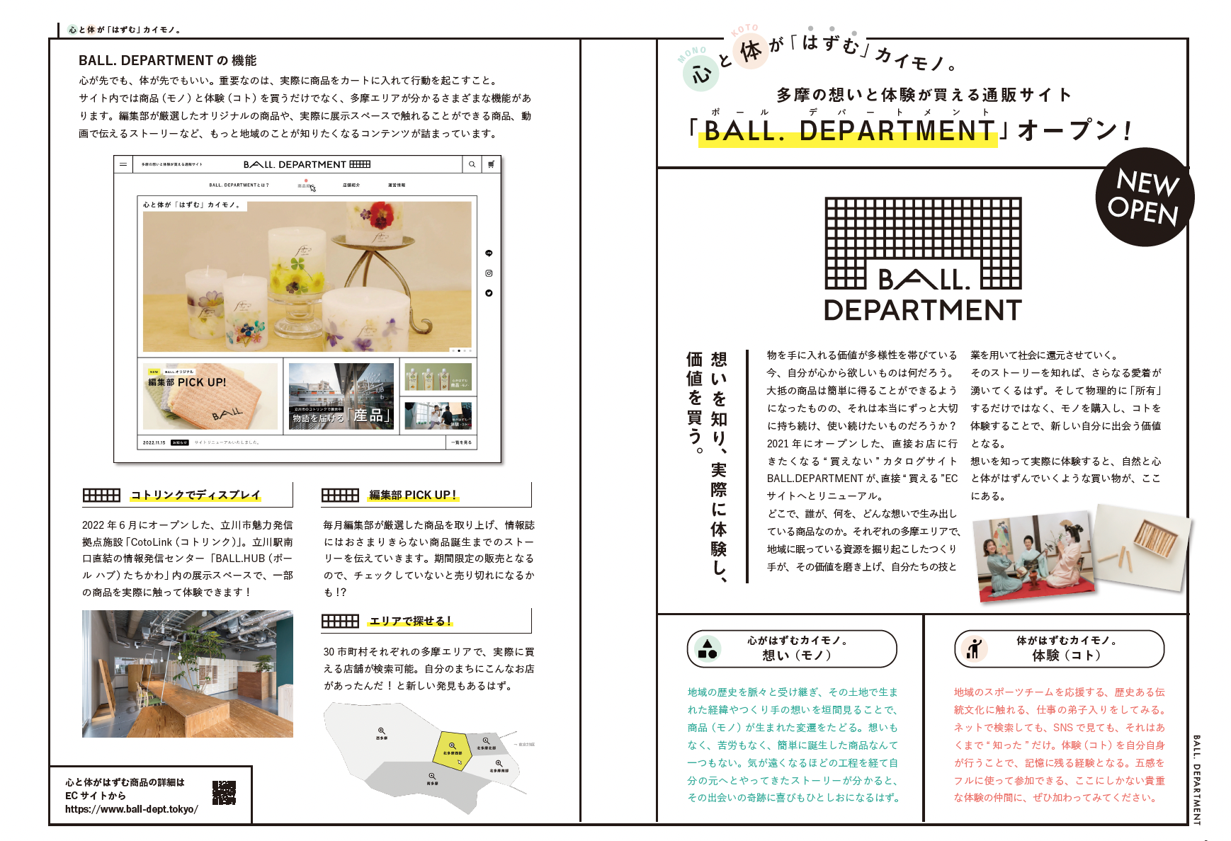 多摩エリアの情報が読めて、買えて、体験できるECサイト「BALL. DEPARTMENT(ボール デパートメント)」と情報誌『BALL.(ボール)』が本日同時リリース