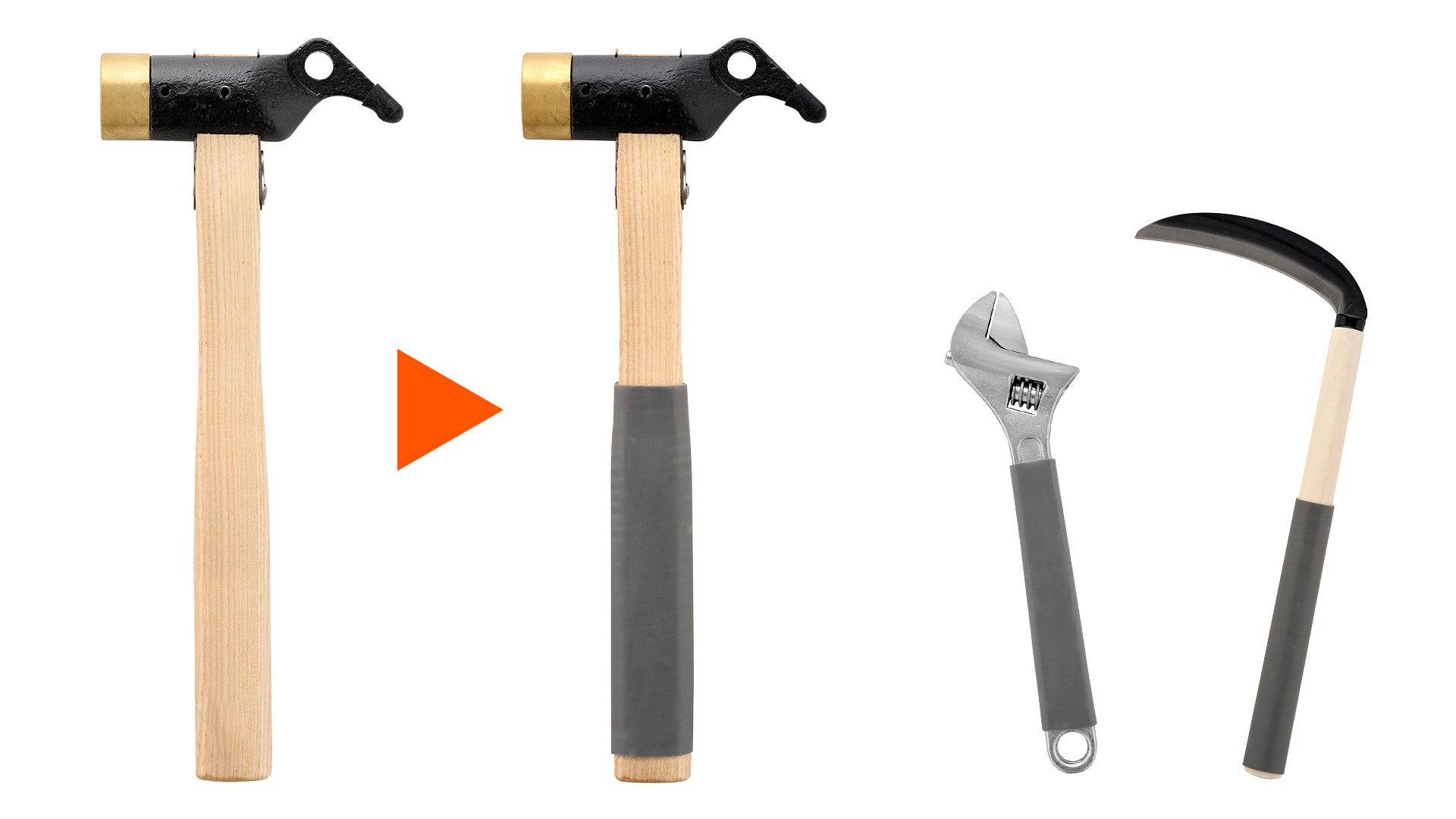 金槌やスパナ、庭仕事で使う鎌なども、そのままだと滑りやすかったり、力を入れにくかったりします。