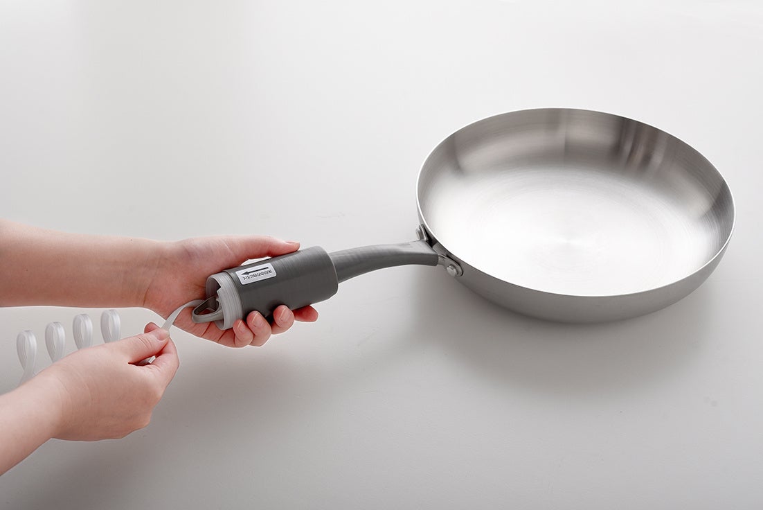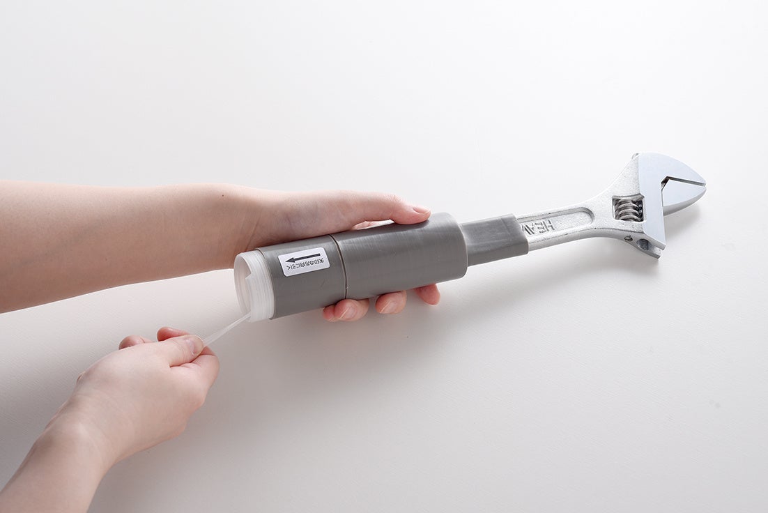フライパンのハンドルや、DIYで使う金槌やペンチなどのハンドルに、あっという間にシリコーンゴムのカバーを巻くことができる、新感覚のグリップです。