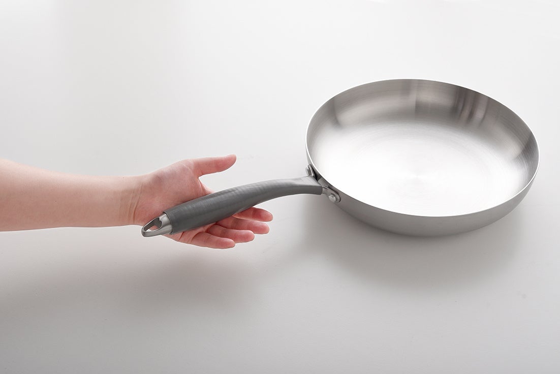 オシャレで素敵な、金属製のハンドルのフライパン。