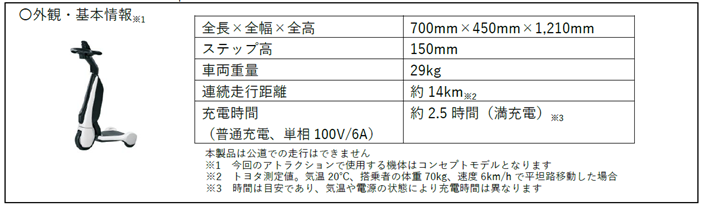 ※2 トヨタ測定値。気温20℃、搭乗者の体重70kg、速度6km/hで平坦路移動した場合