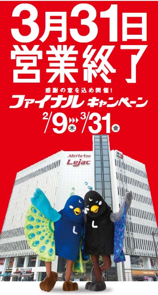 株式会社メルサ(本社:愛知県名古屋市 代表取締役:篠田晃)は、運営する商業施設「名鉄レジャック」にて、営業終了50日前より「ファイナルキャンペーン」を開催いたします。