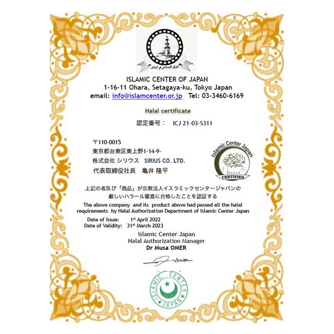 4月1日株式会社シリウス(東京都台東区 代表取締役 亀井隆平)は、自社が開発した次亜塩素酸水生成剤『J-BOY除菌パウダー』が宗教法人イスラミックセンタージャパンのハラール認証審査に合格したことを発表いたします。