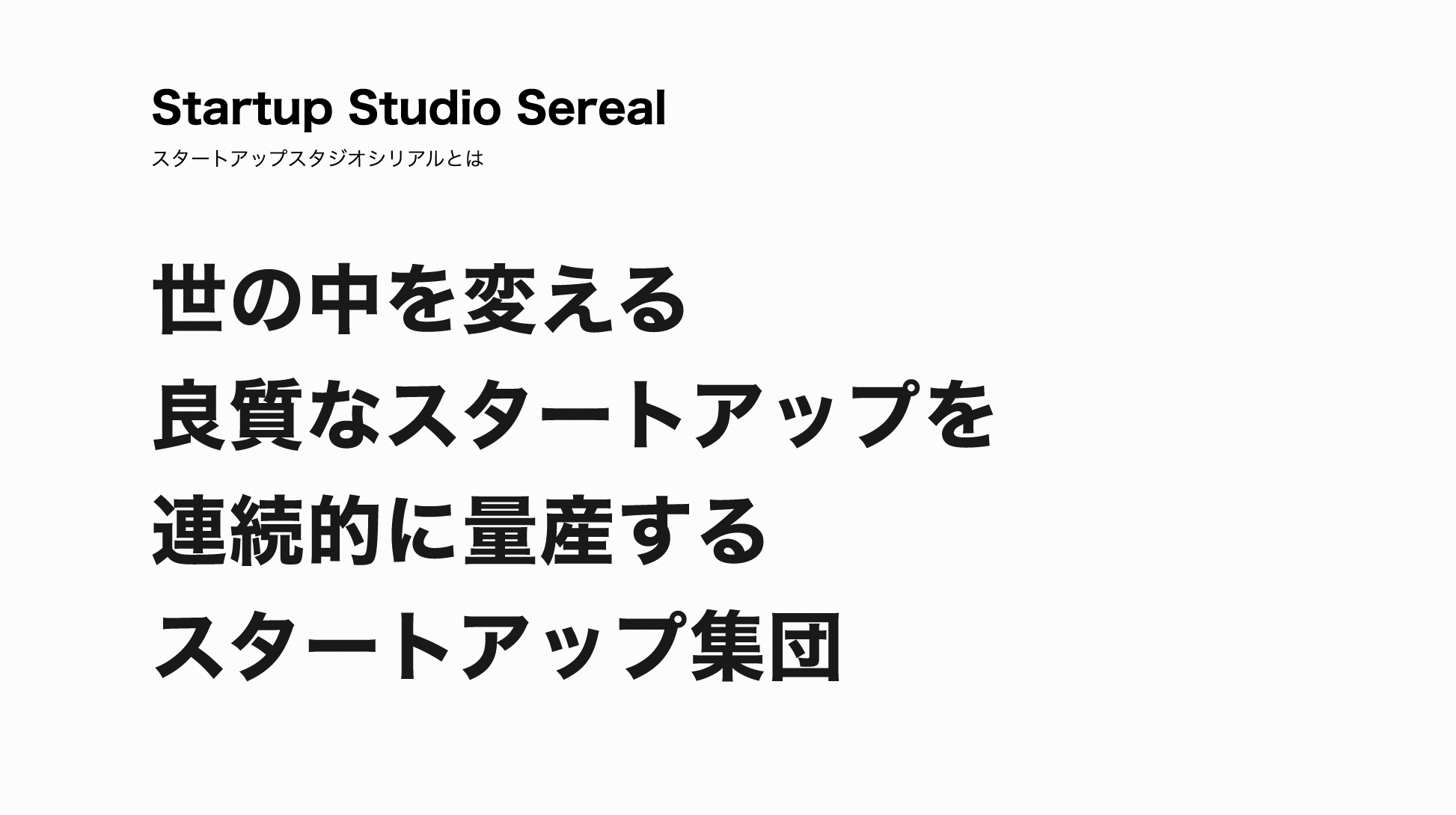 Serealは、スタートアップ企業がPMF達成に至る期間の短縮と成功確率の最大化を実現することで、スタートアップエコシステム全体の強化を図るスタートアップスタジオです。