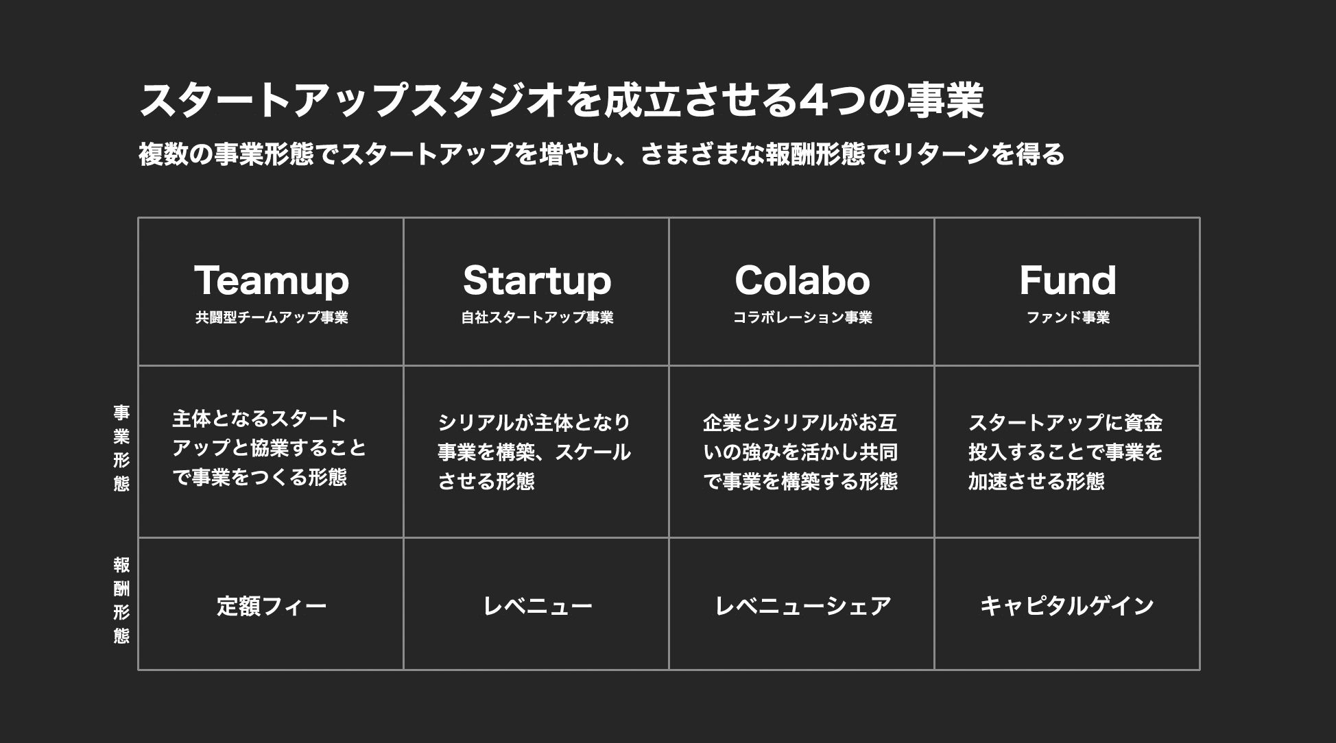 事業 : 創業・協業でスタートアップを量産するスタートアップスタジオ事業