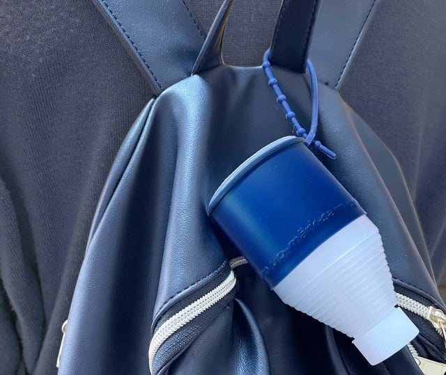 (2)傘カバーもリユースの時代へ。いつでもどこへでも持ち運べて繰り返し使用できるため、環境にも優しいアイテムです。