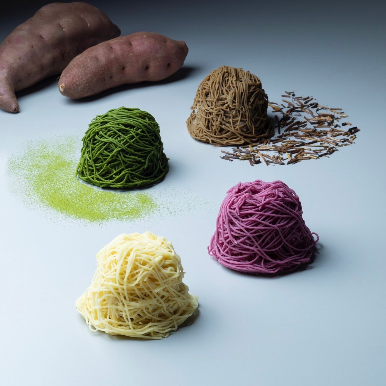 細さ1mmのさつまいもペーストをバニラアイスの上にたっぷりかけた、浅草観光のお供にもぴったりな、食べ歩きさつまいもスイーツです。味わいは茨城県産の紅あずまと、鹿児島県産の綾紫芋の2種類からお選びいただけます。