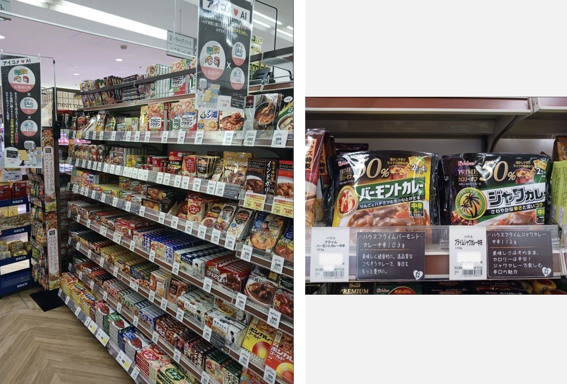 【売り場提案力の増強】実験店舗におけるカレーカテゴリの対象SKU売上構成比が全店平均を6.5ポイント上回る67.5%に。実際の購入者の口コミとAIに基づく商品説明は、情報の信頼性の高さから、顧客に対し選ぶ楽しみと出会いを提供するという評価にいたりました。