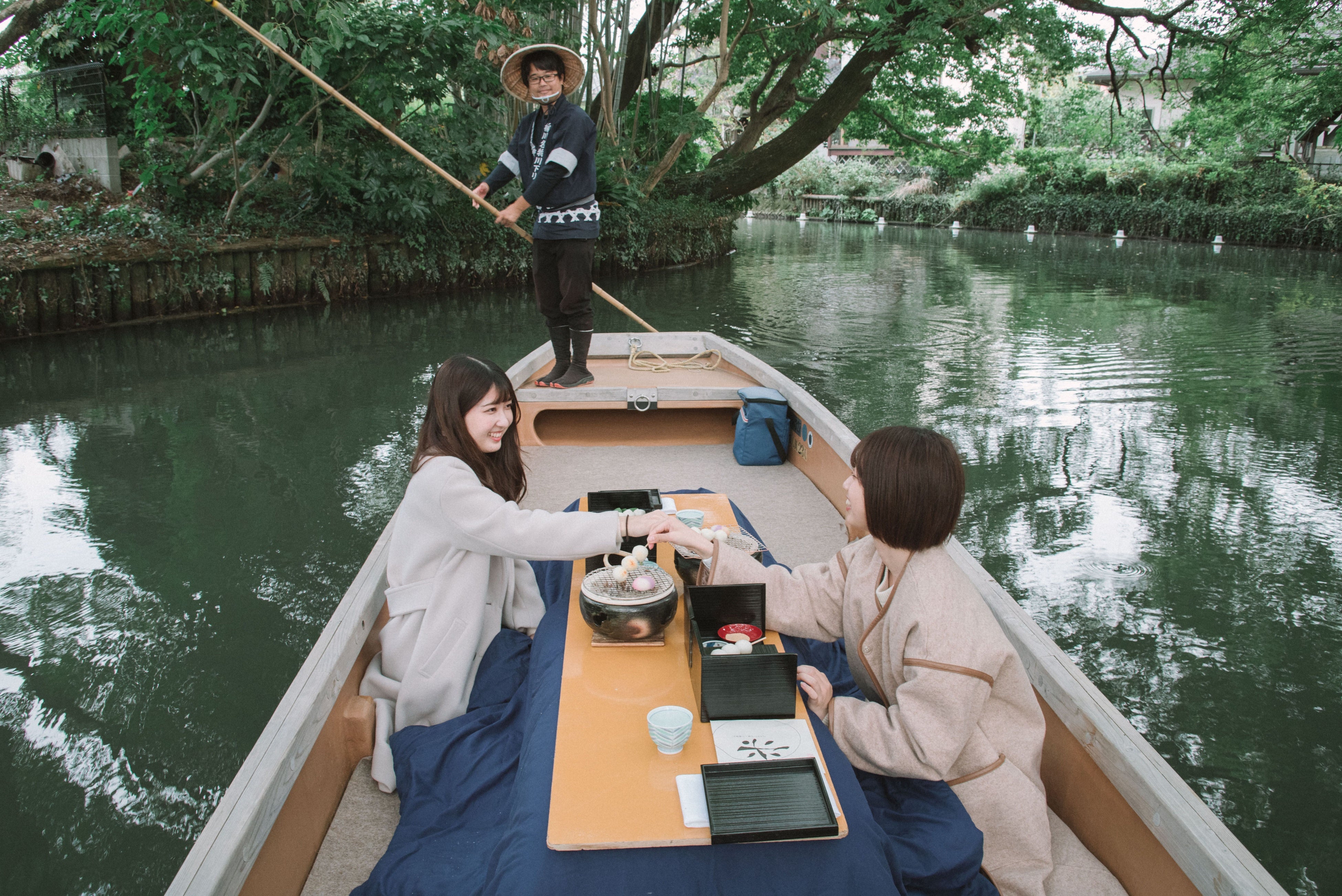 冬の澄んだ空気の中をこたつ舟でゆったりとすすみ、流れゆく景色を楽しみながら、お舟の中ではお団子を炭火で焼き、あつあつをいただく・・・といった、冬だからこそ愉しめるプランです。