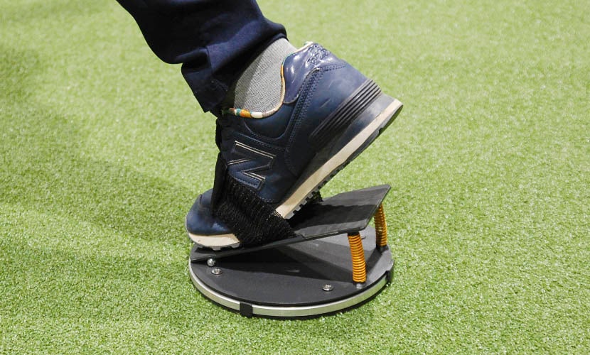 回転盤には、軸足側のつま先が外側に逃げないよう、ストッパーが内蔵されており、最大90度のみ回転する仕様となっております。このストッパーがあることで、つま先が外側に逃げず、ひざが割れることが無いので、肩が開いてしまう癖や、ドアスウィングも矯正してくれます。また回りすぎることも防止でき、自然と理想的な回転運動を身につけることができます。