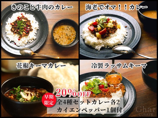 過去プロジェクトに登場したカレーと食べ比べられる、大変お得な早期限定20%OFFのセットをご用意。