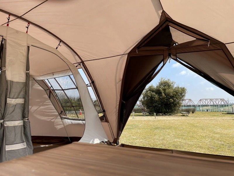 オールシーズンキャンプを楽しめる国内最大級のサイジング。リビングと寝室をひとつでまかなえる、大型2ルームテントです。圧倒的な広さと高さで、もうワンランク上のキャンプ体験を実現させてくれます。