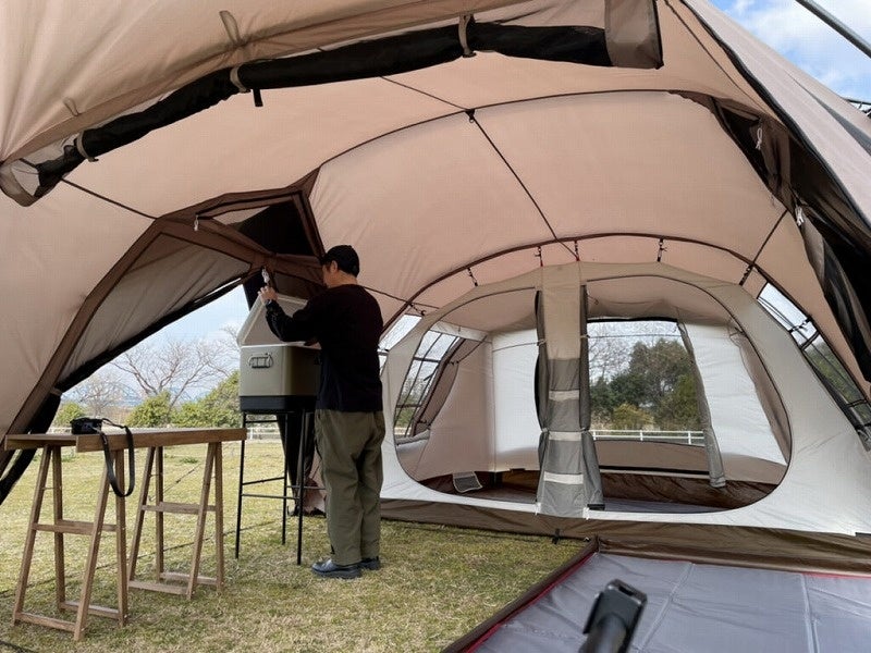 「RATELWORKS(ラーテルワークス)」は、オールシーズンキャンプを楽しめる国内最大級のサイジングでリビングと寝室をひとつでまかなえる、大型2ルームテントを2022年6月17日より抽選販売を開始致します。