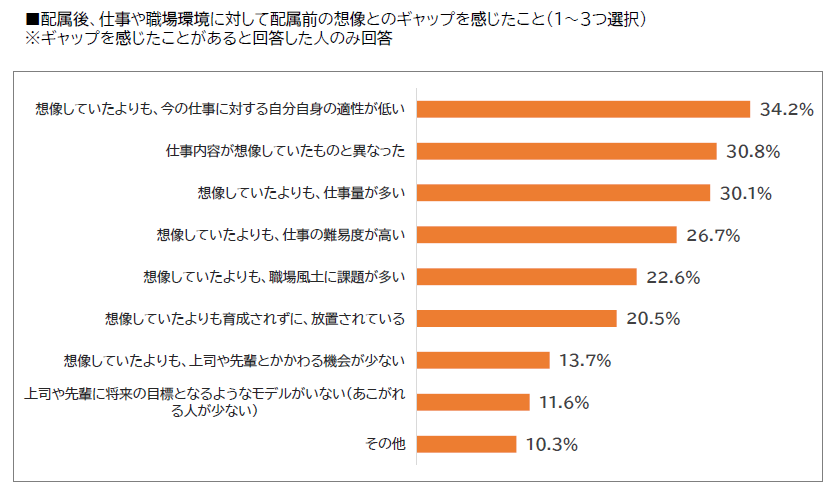 - Point3 配属後、ネガティブなギャップを感じた新入社員のうち「今の仕事に対する自分自身の適性が低い」と感じた方が、34.2%