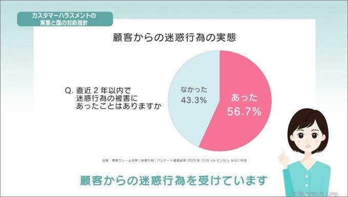 ソフトバンク株式会社の子会社で人事系シェアードサービスを提供するSBアットワーク株式会社(本社:東京都港区、代表取締役社長:野村 純也)は、メンタルヘルスやハラスメント対策、ヘルスケアに関する法人向け動画教材サービス「Wellness Eye Study(ウェルネスアイ スタディ)」に、カスタマーハラスメント、採用活動で起こりうるハラスメント、ジョブ・クラフティングなどをテーマとした5本のコンテンツを新たに追加しました。