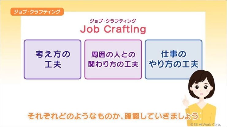 ラインケアのコンテンツである「ジョブ・クラフティング ~メンバーの主体性を引き出し、仕事のやりがいを醸成する~」は、役職を問わず全社員向けのコンテンツとして2022年3月に提供を開始して大変ご好評いただいている『ジョブ・クラフティング~主体的に仕事を工夫し、やりがいを高める』に続くもので、今回は管理職・リーダー層を対象に、メンバーの主体性を引き出すための考え方や質問の仕方など、実践的な内容を学習できるものになっています。