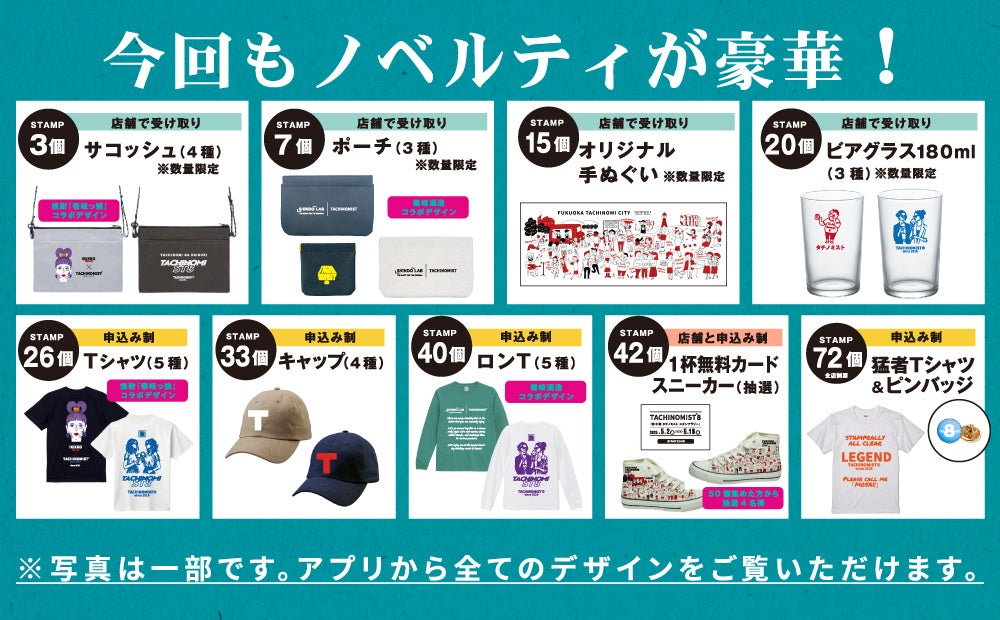 福岡市内の立ち飲み屋をスタンプラリー形式で廻り、スタンプを貯めながら景品を獲得していくイベント。