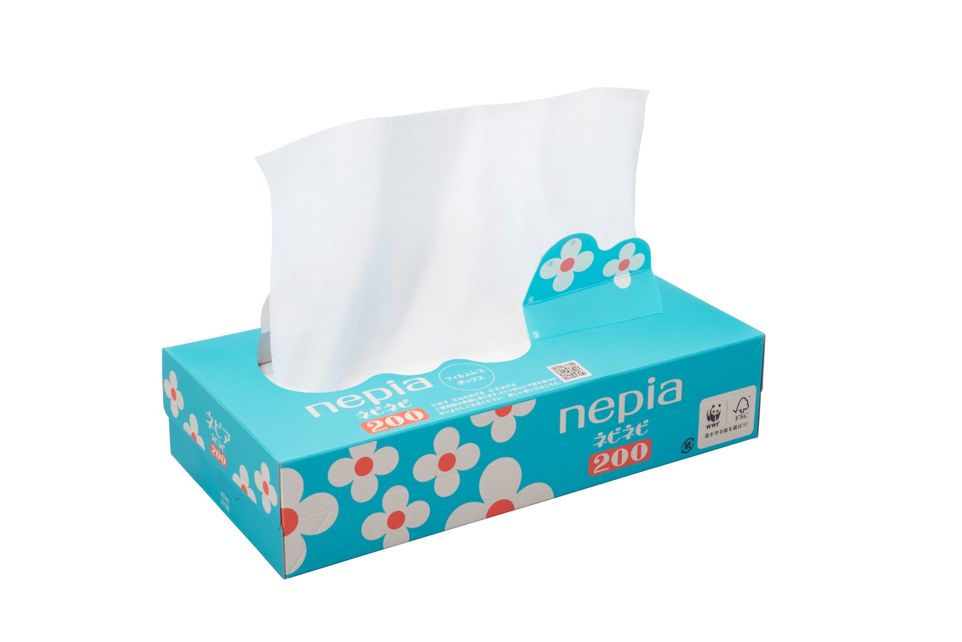 新採用!プラスチックフィルム25%削減を実現!押すだけカンタン取り出し口の、フィルムレスボックス「ネピア ネピネピ ティシュ5コパック 400枚(200組)」3月1日(水)リニューアル発売