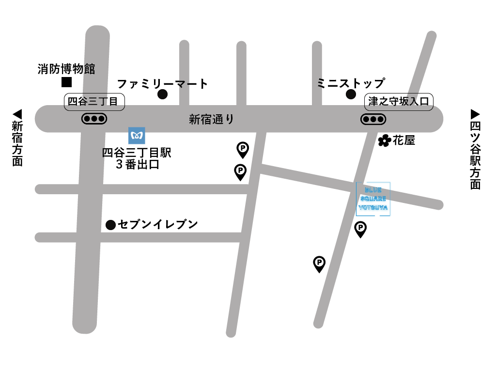四谷三丁目駅から徒歩3分。四ツ谷駅から徒歩10分という好立地にある、キャパ約100席(着席時)の小劇場&イベントスペース。演劇・お笑いライブ・音楽ライブ・ファンミーティング・オーディション・ワークショップ・撮影などさまざまな活用が可能です。この場所で活動したエンターテイナーたちが、どこまでも広がる青い空に飛び立ち、更なる活躍に繋がることを願っております。