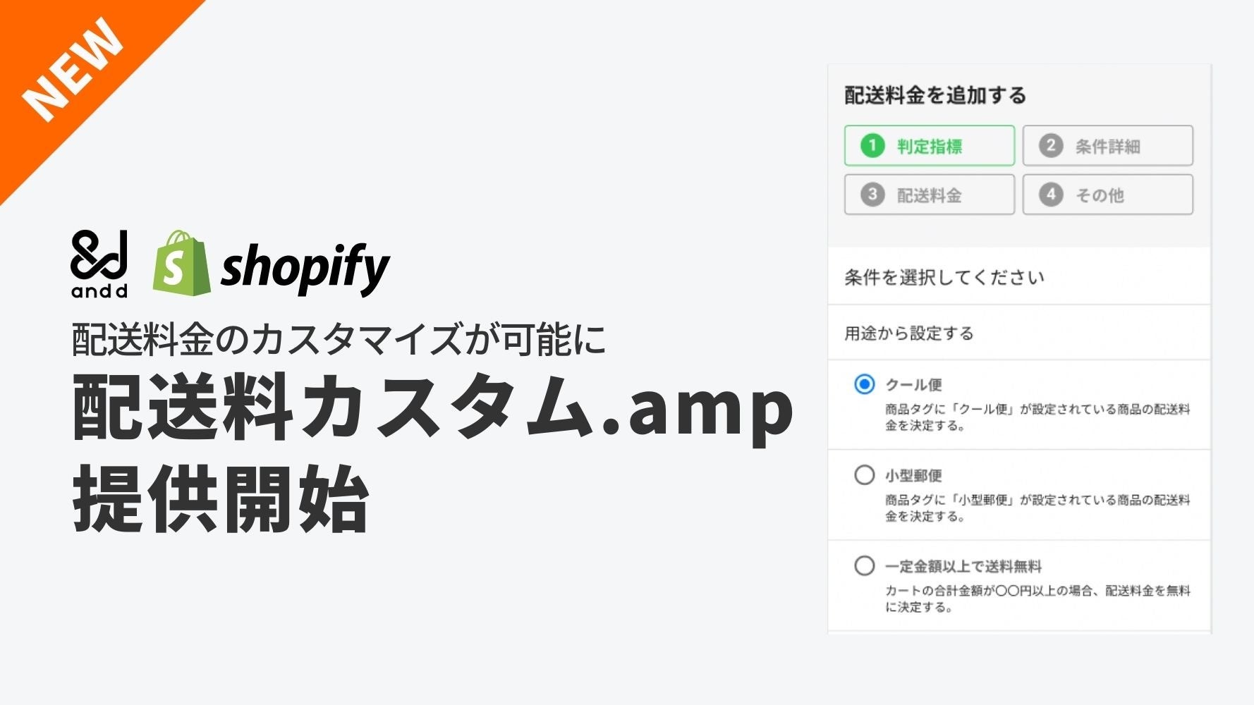 「いいモノゴトをおこす」をテーマに、Eコマース領域でShopifyアプリ開発事業を展開する株式会社and.d(本社:東京都町田市 代表取締役:深澤 大気 以下、and.d)は、同社が提供するShopifyアプリ「.amp(ドットアンプ)」シリーズ(※)にて、新アプリ「配送料カスタム.amp」(以下、本アプリ)をリリースしたことをお知らせいたします。