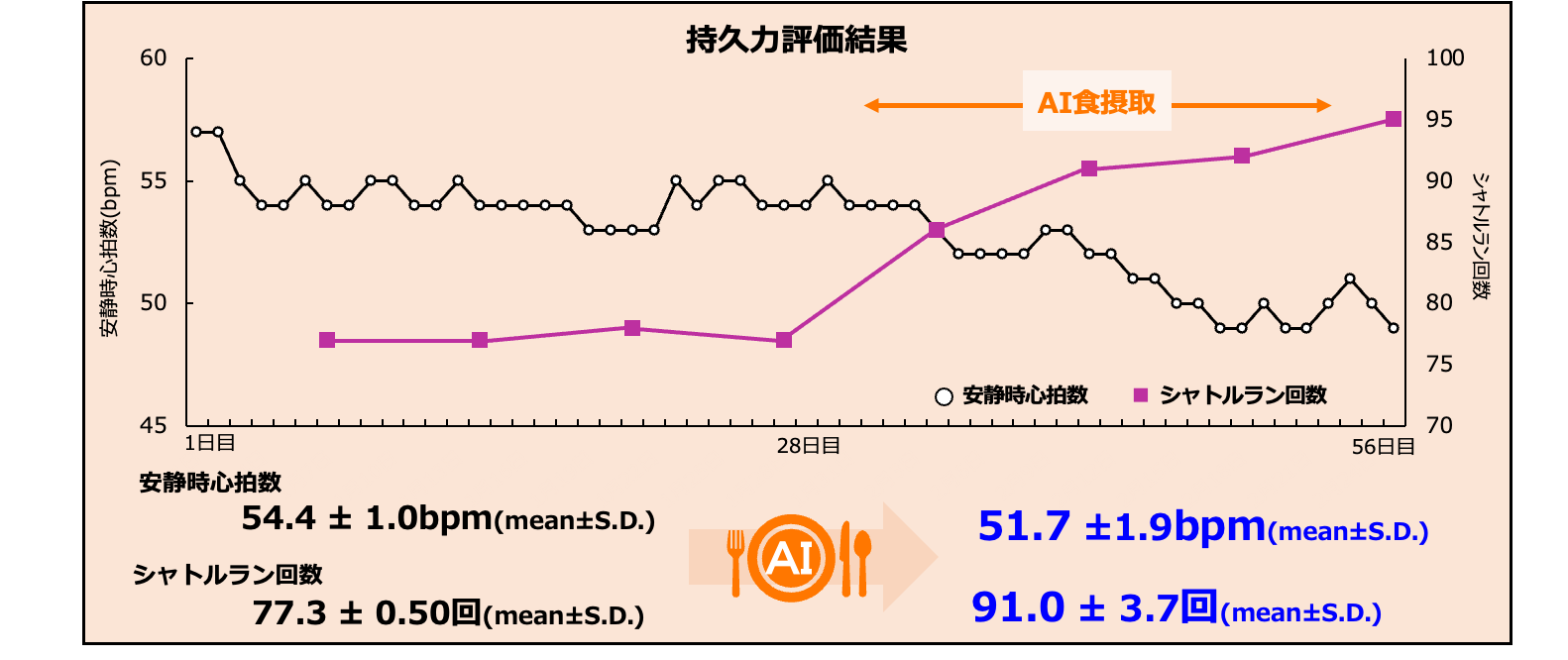 ■ AI 食技術による実証事例②:運動機能(持久力)向上を実現