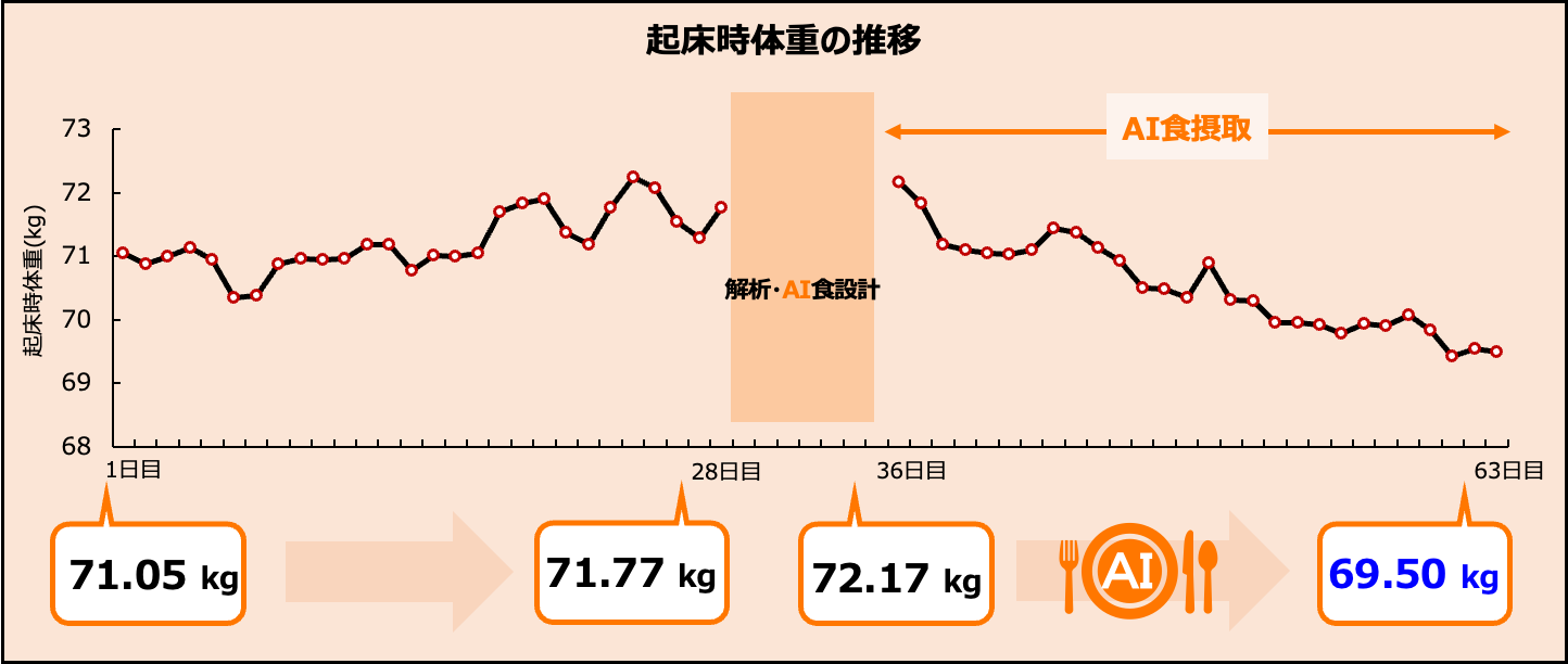 ■ AI 食技術による実証事例①:カロリー摂取量を減らさずに体重改善を実現