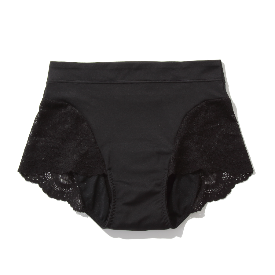 ボディ部分には伸びが良く体にフィットする素材、サイドにはやわらかいレースを合わせ、履き心地の良さとスタイリッシュさをの両方を追求しました。吸水部分は4層構造で、吸水量は安心の30ml。女性なら一度は経験したことがあるあの「ヒヤッっ」とを軽減します。