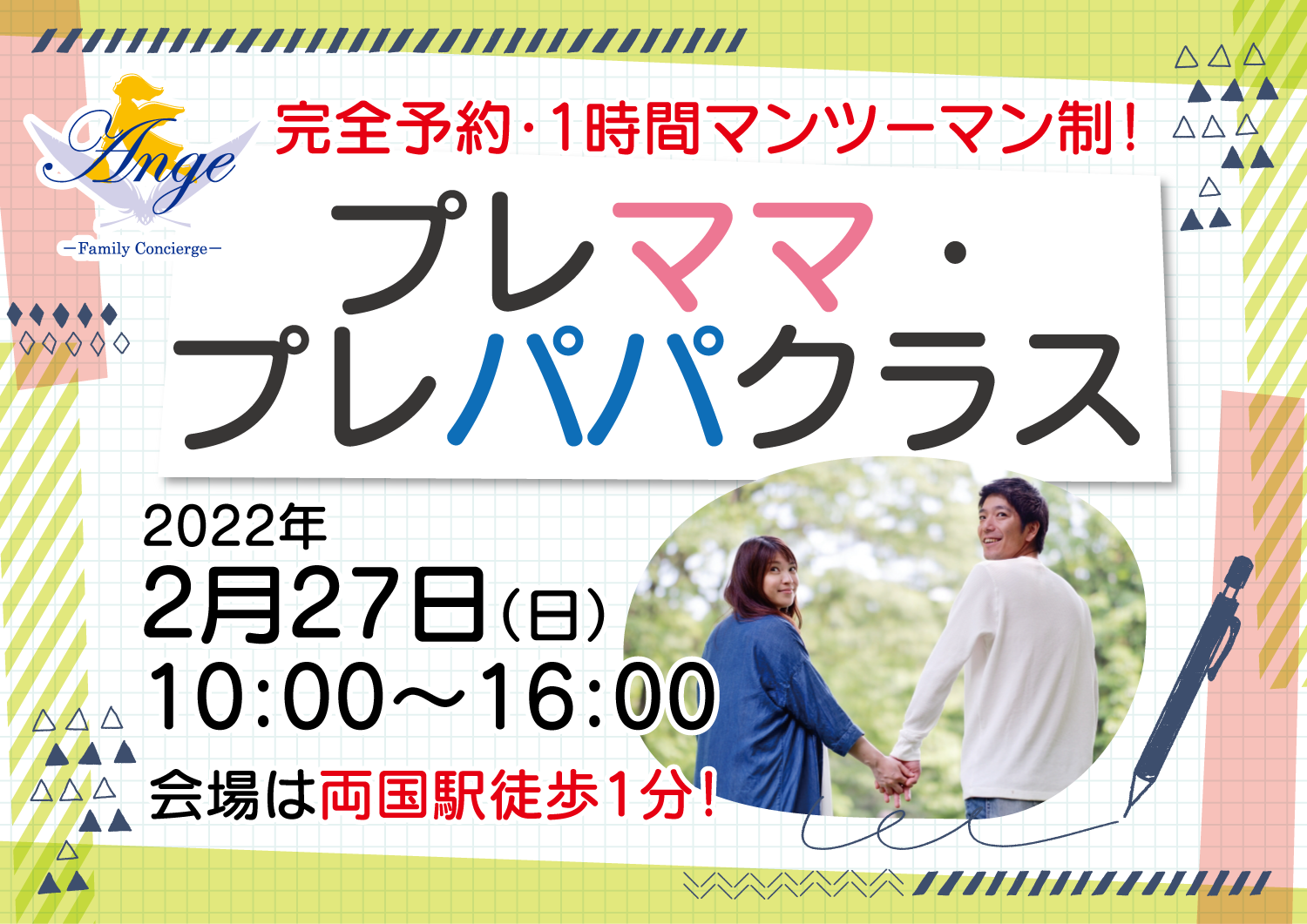 2022年2月27日(日)1時間完全マンツーマン制のプレママ・プレパパクラスを両国にて開催&参加受付スタート