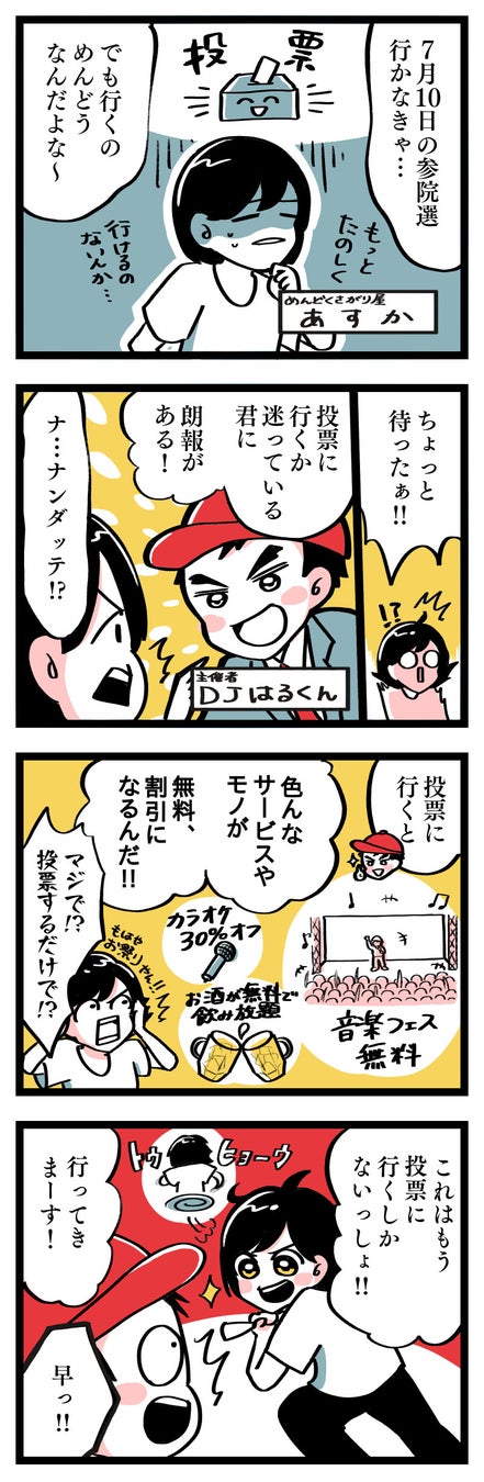 これは、選挙の投票を行うと様々な優待を受けられる選挙キャンペーンという取り組みとなっていて、全国で250箇所を超える飲食・小売店などの提携店舗の皆さんと実施しています。また、投票日当日には「投票を行うと無料で楽しめる音楽フェス」も開催しています。