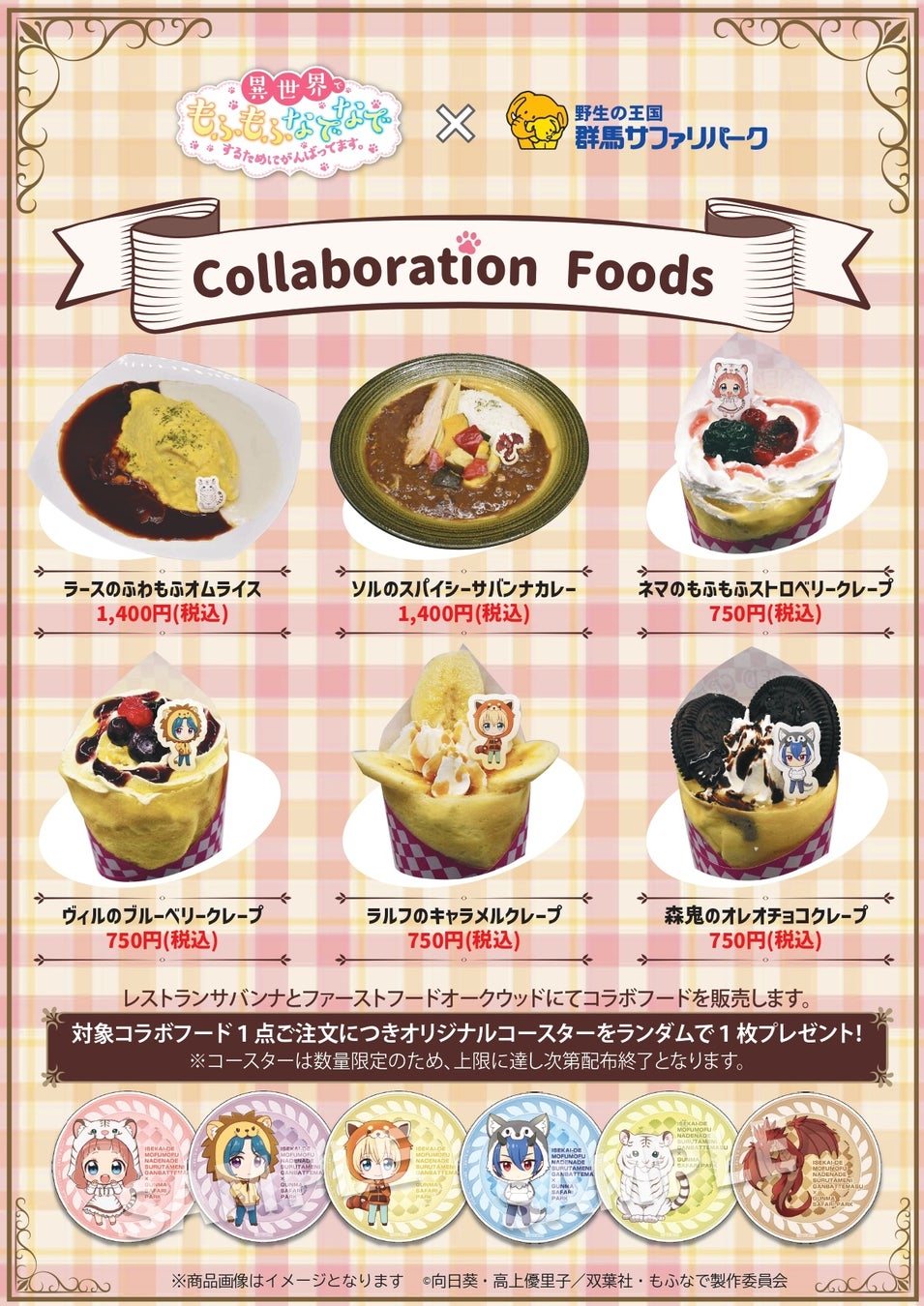※対象コラボフード1点ご注文につき「オリジナルコースター」をランダムで1枚プレゼントします。