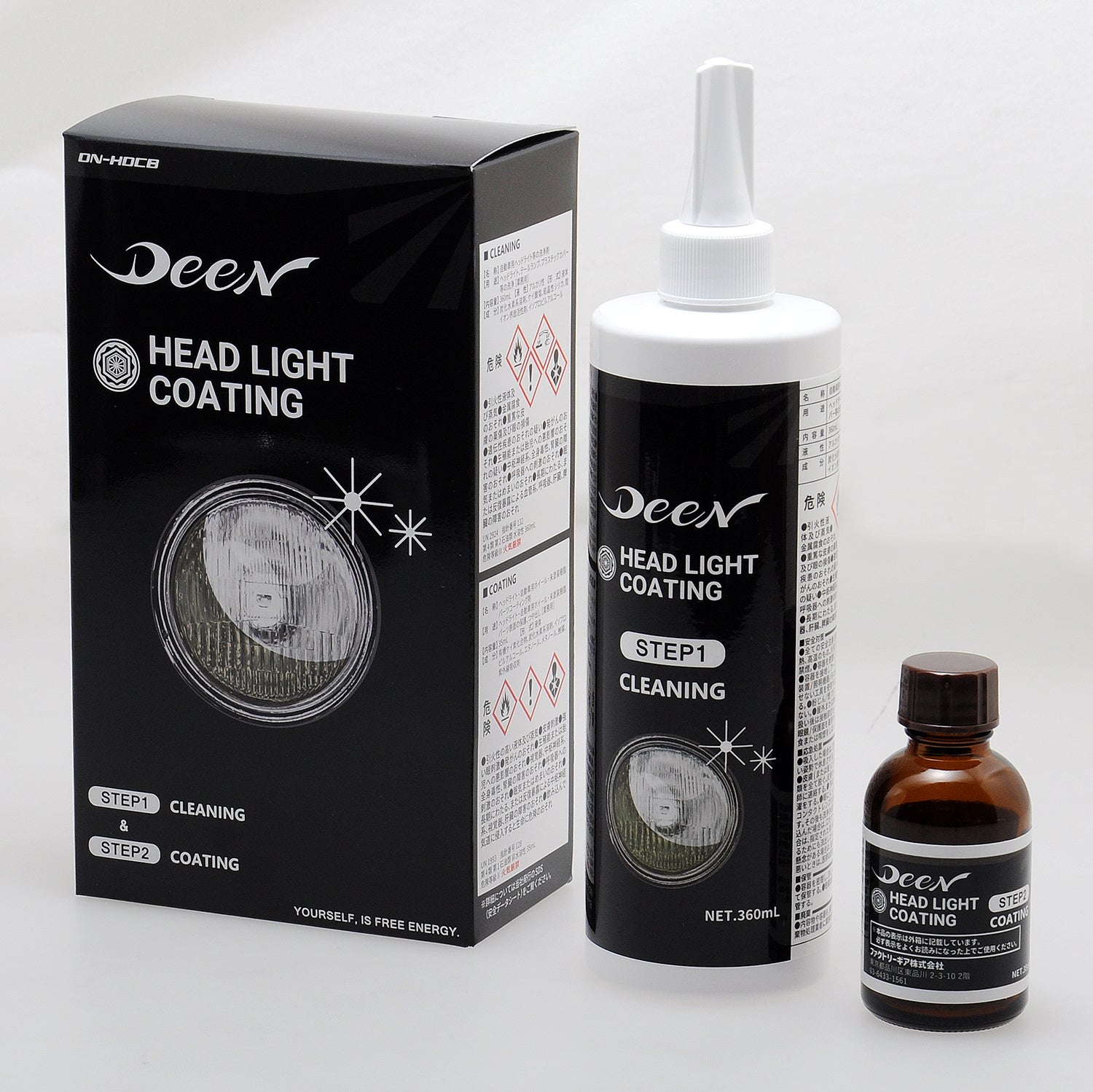 工具ブランドDEEN(総発売元ファクトリーギア株式会社)から、ヘッドライトの黄ばみ、白化を強力除去するヘッドライトコーティング(大容量)が発売されました!