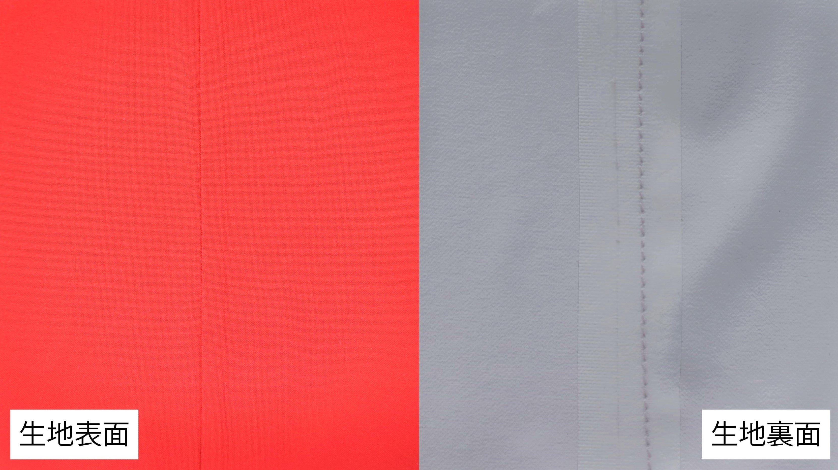 縫い目には水が染み込んでこないように生地裏面からしっかりとシームシーリングされているため、大雨でも長時間安心して着用できます