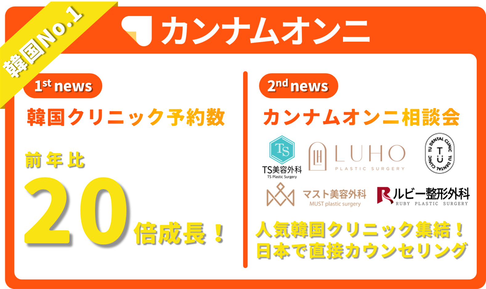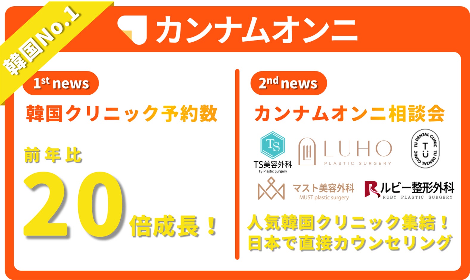 【渡韓整形が急増】美容医療アプリ「カンナムオンニ」の韓国クリニック予約数は前年比20倍へ。韓国クリニックを日本へ誘致した「相談会」も定期開催!