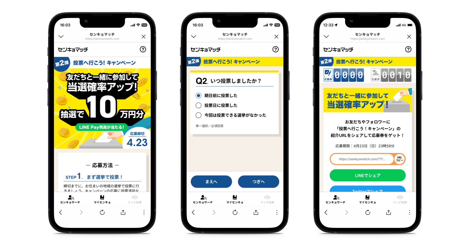 ※お友だちがすでにセンキョマッチユーザーの場合、応募券は増えません。
