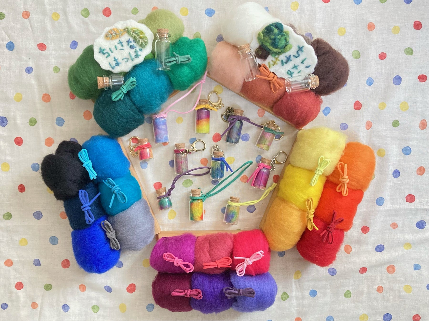 カラフルな羊毛を小瓶に詰めてオリジナルキーホルダーを制作するワークショップを開催します。