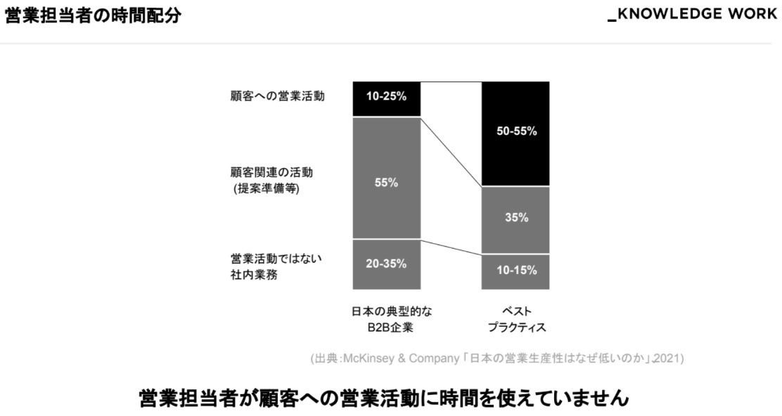 営業担当者は商談準備に多くの時間を割いており、顧客との商談を効率的・効果的に進められずにいます。