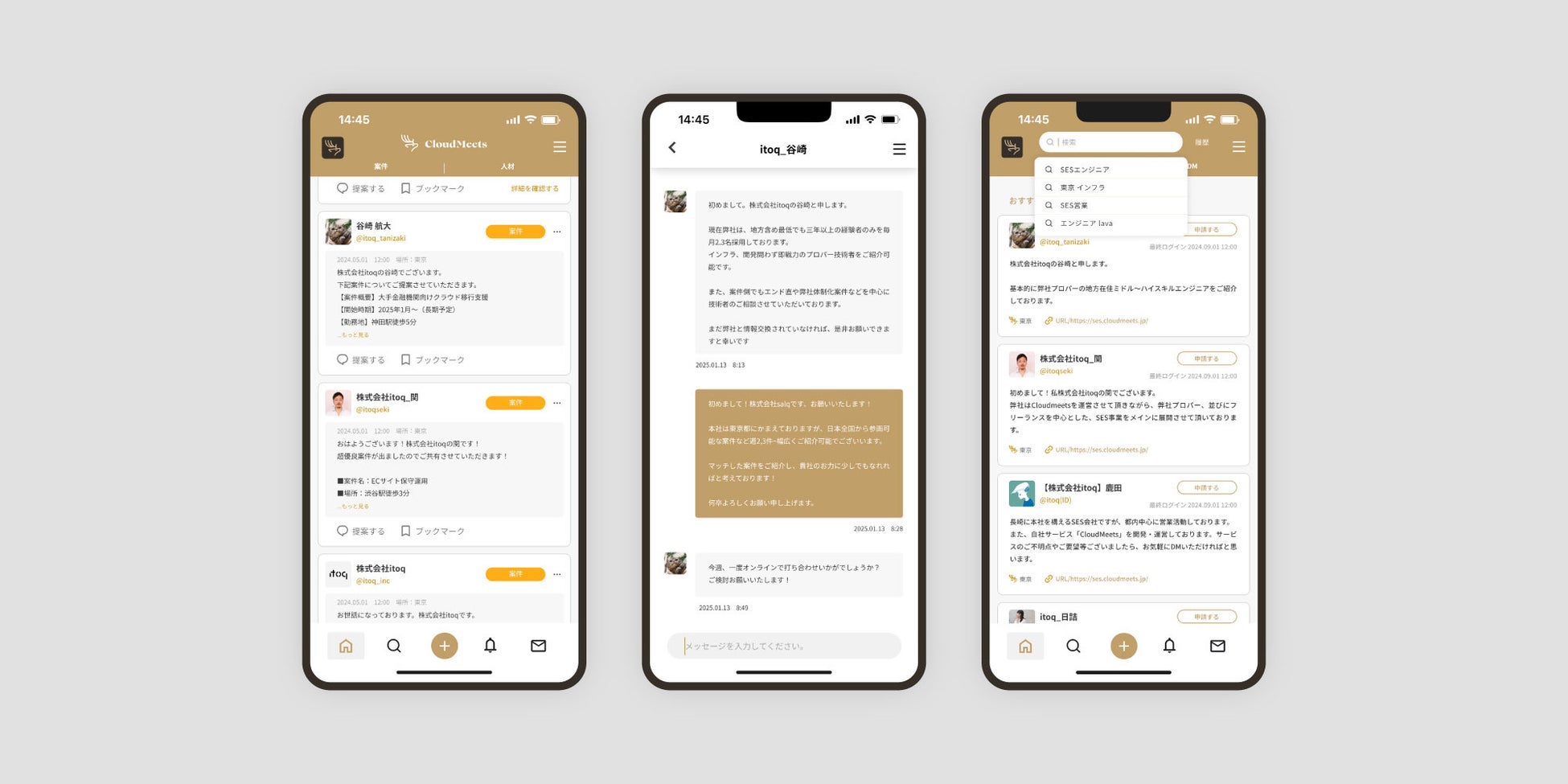 株式会社itoq(本社:東京都世田谷区砧3丁目5-2 勝吉ビル4F、代表取締役:辻本 健一)は、2025年1月20日に当社が提供するSES営業向けプラットフォーム「CloudMeets」のデザインを全面的にリニューアルしました。