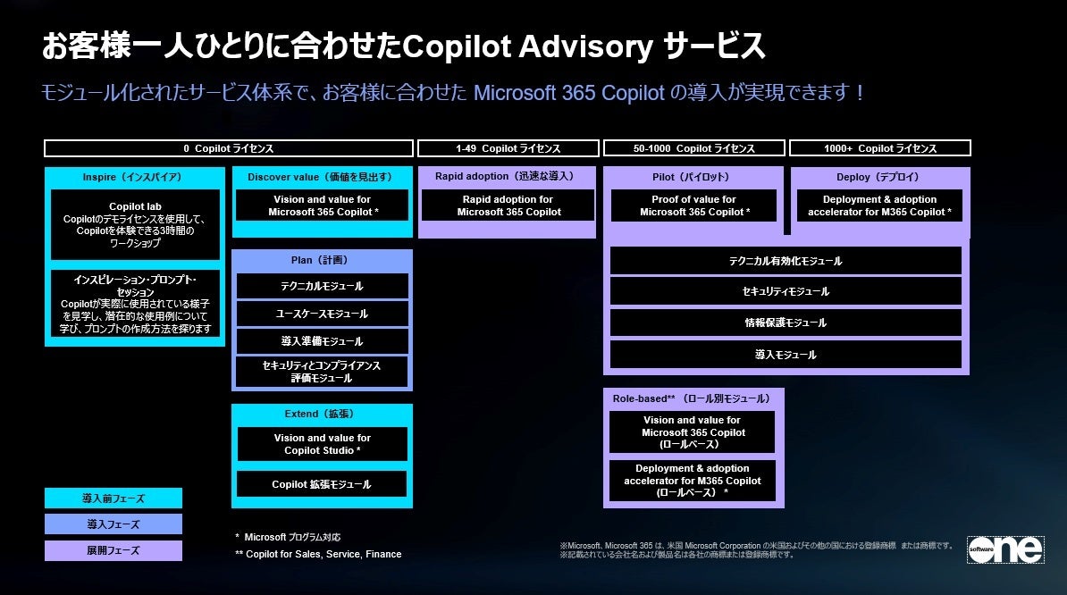モジュール化された新サービス体系により、お客様にベストフィットの導入ができる様になりました!御社の Microsoft Copilot導入が、当サービスにより一気に現実味を帯びてきます!