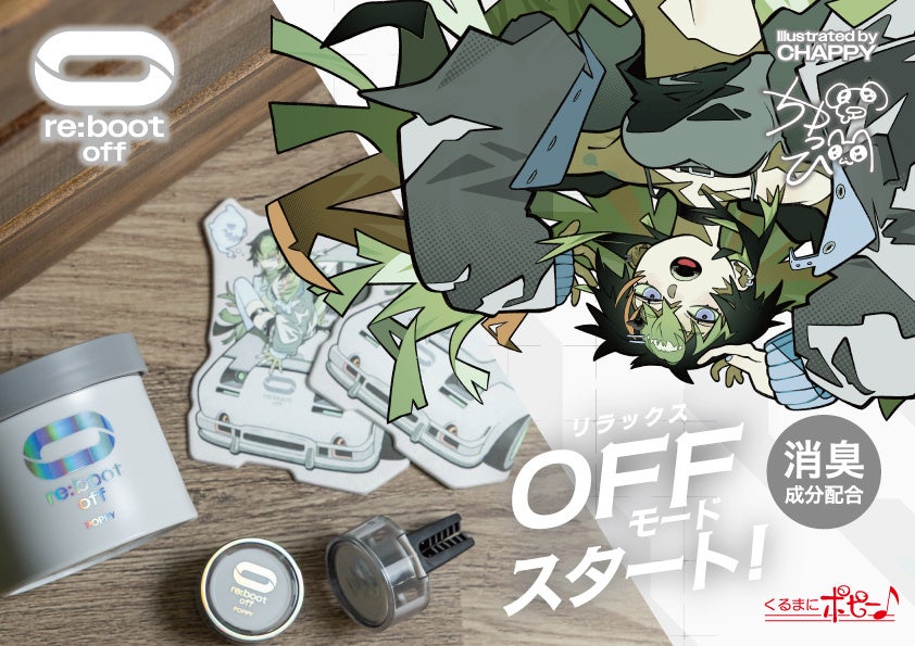 2023年春に発売した「リブート」は人気イラストレーター「WOOMA」さんが描き下ろしたイラストを起用した自動車用消臭芳香剤でです。